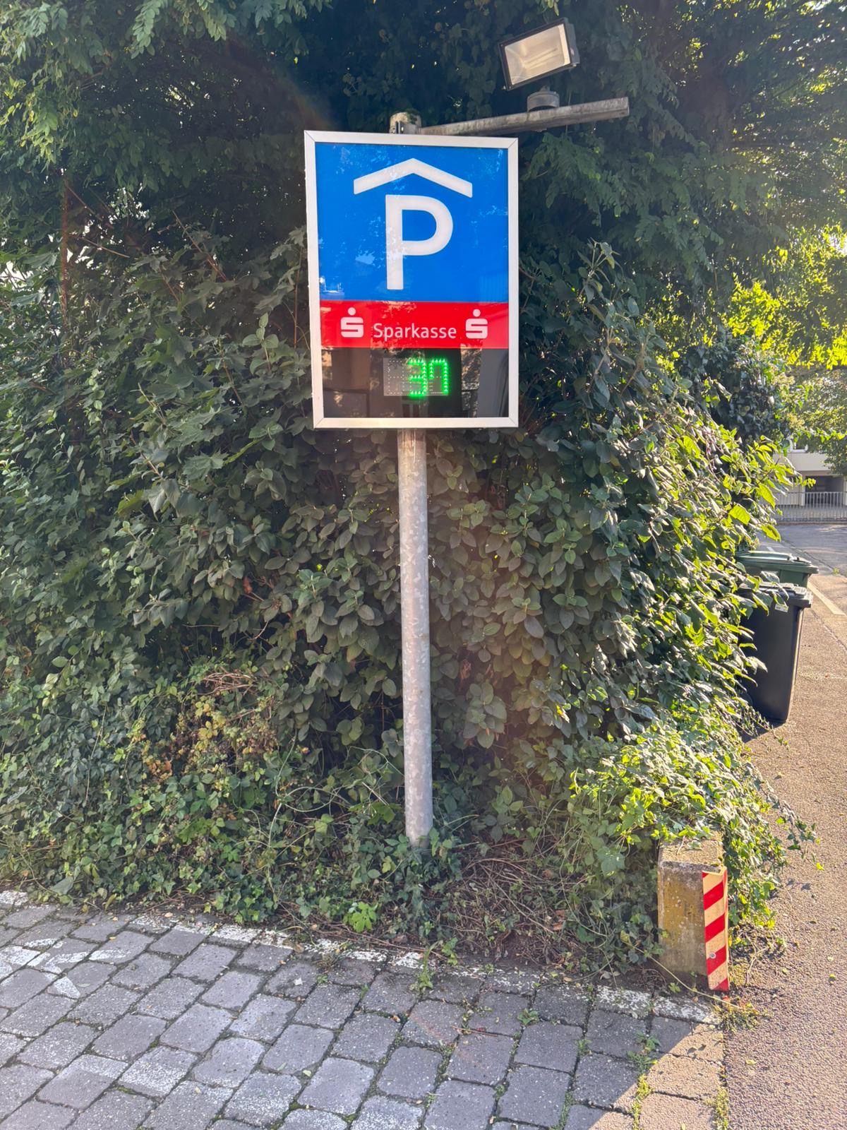 Für die Sparkasse in Schwäbisch Gmünd montierten wir ein neues Parkschild mit integrierter Anzeige für die Anzahl freier Parkplätze, damit die Kundinnen und Kunden wissen, ob sie hier noch einen 🅿️ finden oder sich anderweitig umschauen müssen. Das spart den Gästen der Sparkasse Zeit und Energie. Und beides ist Geld.