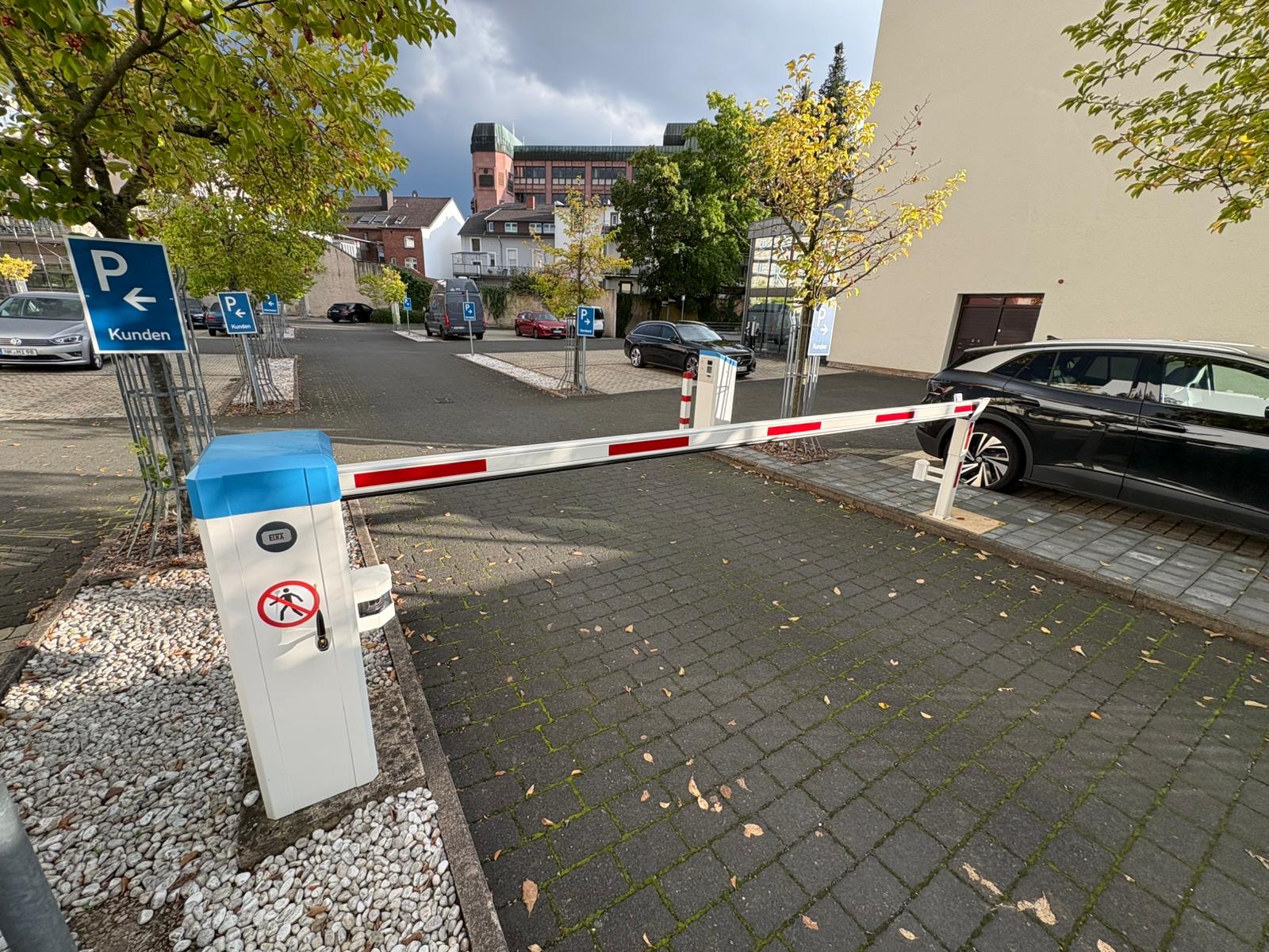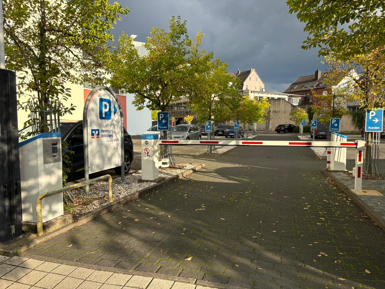 An der Zufahrt einer Vereinigte Volksbank eG Filiale in Saarlouis erweiterten wir die bestehende Schrankenanlage um ein EC Parksystem für die Zu- und Ausfahrt. Das System passt zufällig nicht nur farblich perfekt zu den Unternehmensfarben, es ist außerdem speziell für die Annahme von Bank- und/oder systembekannten Karten wie zum Beispiel für Dauerparker konzipiert.